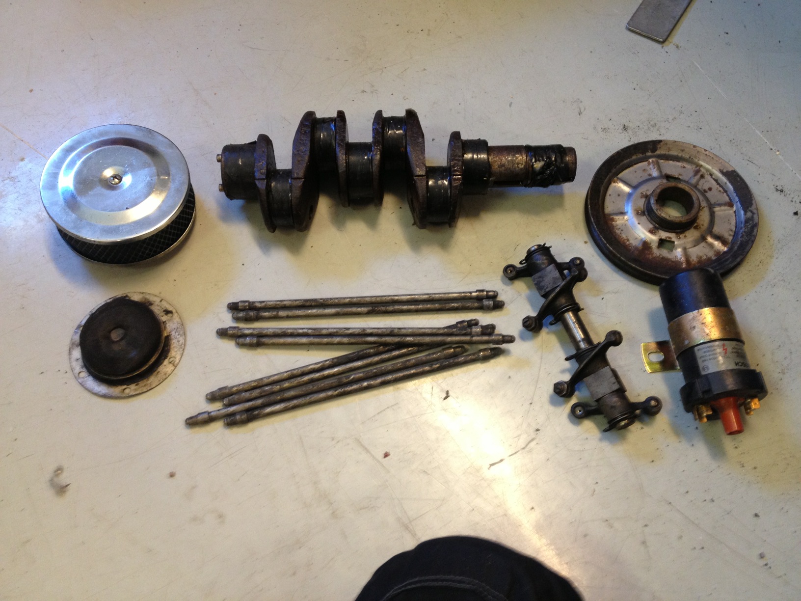 Okänd vad gäller vevaxeln också, i princip alla delarna kom med från samma försäljare. Antar begagnad.