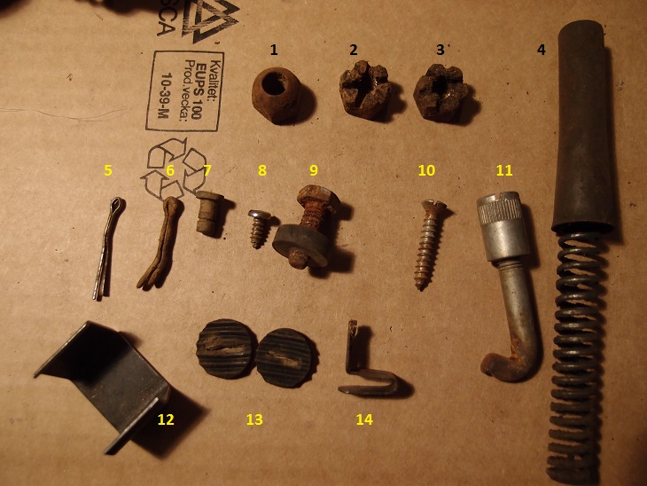 har tyvärr bara tre fästen kompletta, så även jag behöver ett plåtbleck och den där skruven nr.11