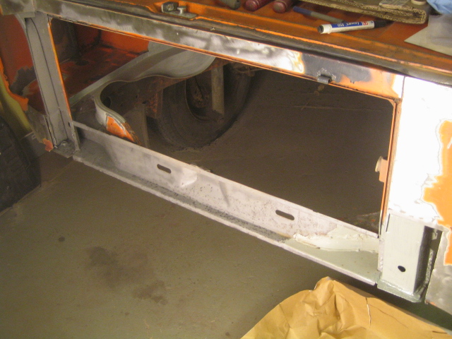 Nedre delen på plåten i förra inlägget var ganska anfrätt. Blästringen tog rätt hårt på plåten så jag beslutade mig för att skarva i ny frisk plåt. En kväll tog det..... F-n vilken tid det tar att få bitarna att passa ordentligt! Nu återstår att pressa ett hål även i denna sida och sedan skall allt målas innan ditsvetsning.