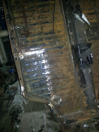 Efter blästring ska hålet för växelspaken flyttas 20 cm bakåt ,förstärkning i ytterkant svetsas fast ,samt förstärkning i plattan för stolarna.