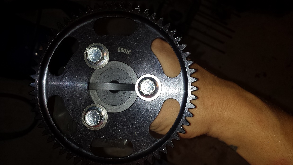 Jag använde gänglåsning, men jag tror inte att det behövs.. Man drar hårt, skruvarna ska precis gå igenom drevet och drar man ett par körnslag så att de låser mot drevet. Det tipset fick jag av herr Landelius.