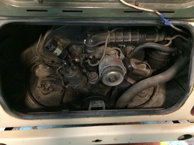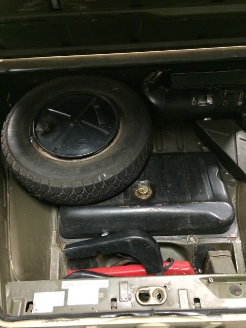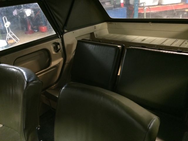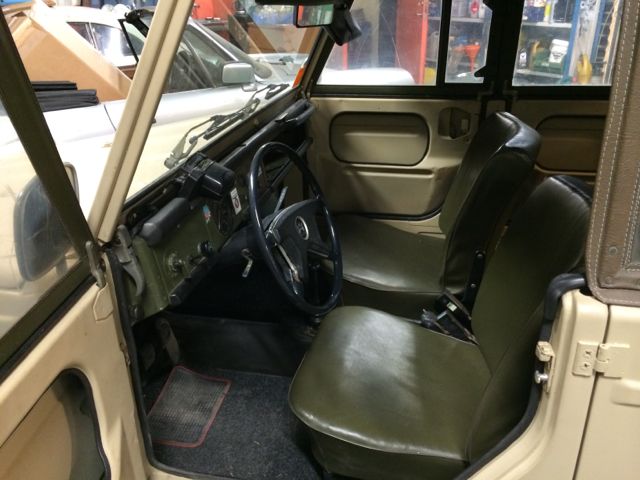 Den är ommålad till någon form av öken-beige men i övrigt är den oerhört fin. Inredning + sufflett är perfekt, ingen rost någonstans och den går som en klocka.