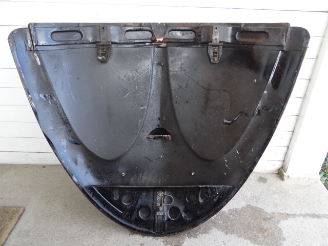 Motorlucka till äldre typ 1, vet ej årsmodell, vred och låsning funkar, gångjärn finns, spricka i nummerplåtsbelysningsglaset, lite ytrost, några mindre skador se bild. skickas ej