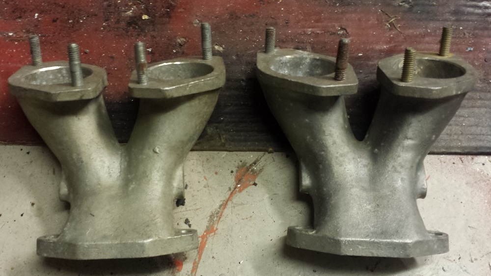Har en extra uppsättning insug som passar typ och Weber IDA (även Empi EPC). Insugen är korta, så det bygger inte så mycket på höjden. De är helt oportade, sprickfria och aldrig varit lagade. Tillverkare okänd, ingen märkning, det ser ut att vara fin gjutning.