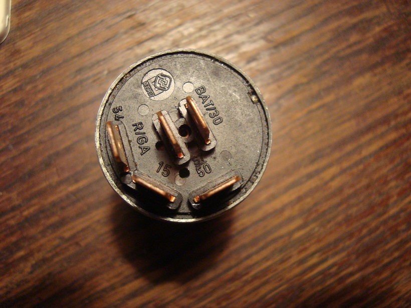54, utgång till startmotrons solenoid, spänning på när nyckeln är i det tredje återfjädrande läget.