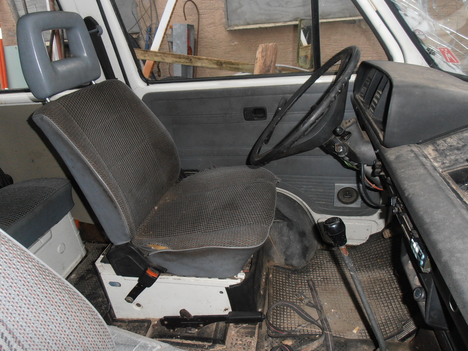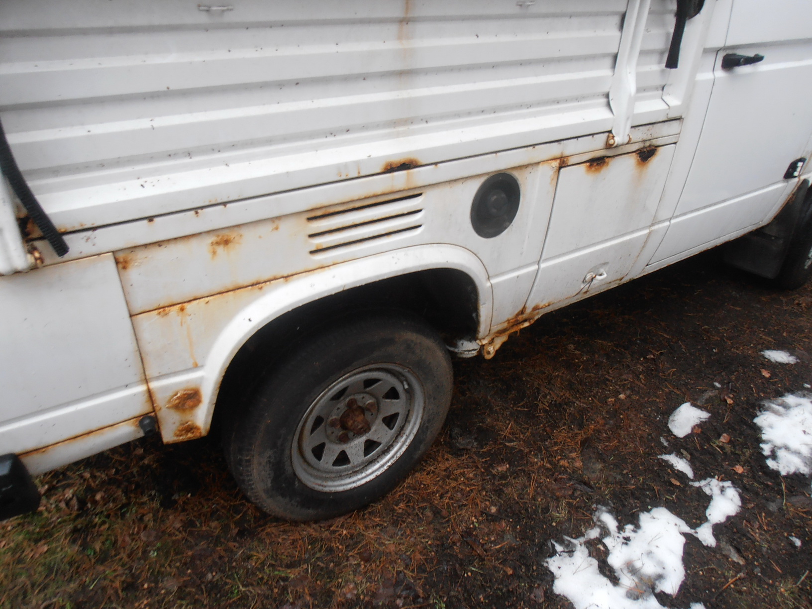Ca 23500mil. Sista bes 2003, sen gick den som obesiktigad gårdsbil ett antal år. Ser vettig ut under. Däcken slut. Vindrutan spräckt av snöras från hustak. Behöver säkert en rejäl översyn av både motor och bromsar innan den kan tas i bruk. Jag brukar flytta den ca 6ggr/år, och den har alltid startat lätt.