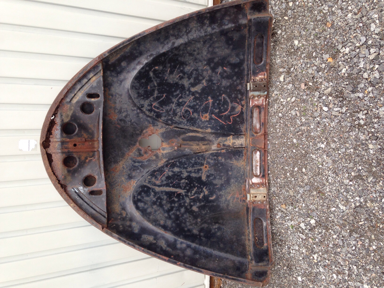 W motorlucka enligt rubrik. "Patinerad" och rostig i underkant samt något bulig.