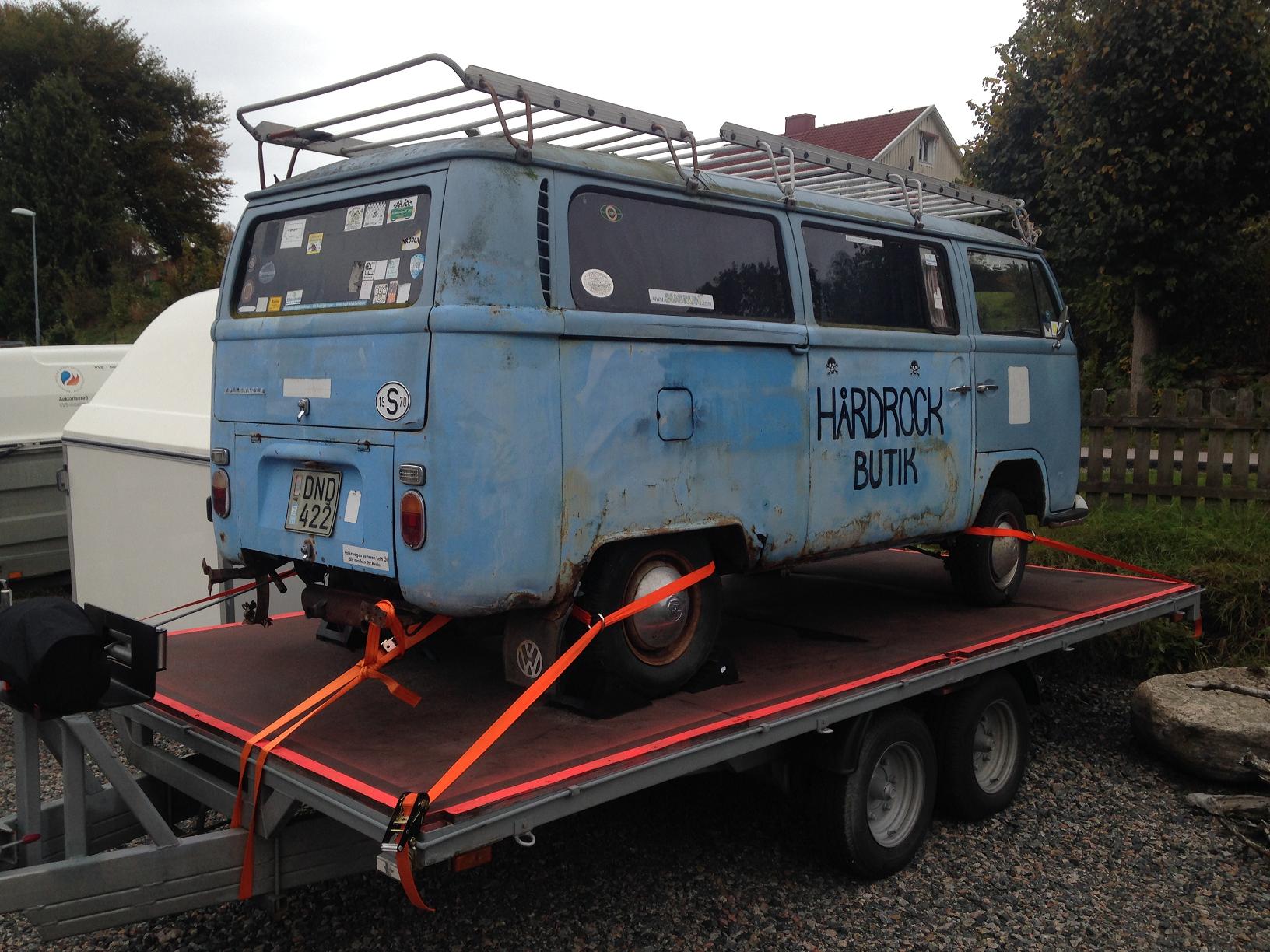Det tog ca en månad innan jag hittade bilen jag ville ha. Valet föll på en Babyblå -70 Early Bay som dök upp på blocket (se annonsbilden nedan) när jag satt och käkade lunch på jobbet en dag. Bilen stod 55-60 mil hemifrån och efter en snabb överenskommelse över telefon med den tidigare ägeren om ett pris som vi båda vart nöjda med var det bara att åka hem, hänga på trailern och åka!