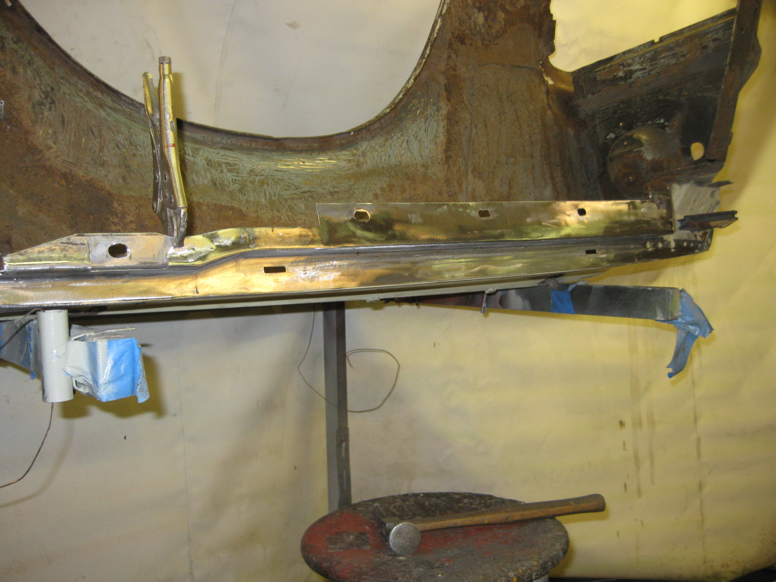 då det finns rost på ställen som kommer bakom andra delar var jag tvungen att blästra o då blev lösningen att bygga ett bläster skåp som skärmarna får plats i , tog fram några träskivor o skruvade ihop tejpade på lite plast på framsidan o en lampa uppe på o sedan provade jag super bygget  ICQ/ad  det funkade kanon bra med dammsugar slangen inslängd i botten nästan inget läckte ut  ICQ/ag