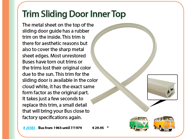 En annan produkt till typ 2 är kjederlist som sitter uppe vid övre skenan till skjutdörren. Kjederlisten skyddar dig mot vassa kanten, passar alla bussar från 1963 till 1979.