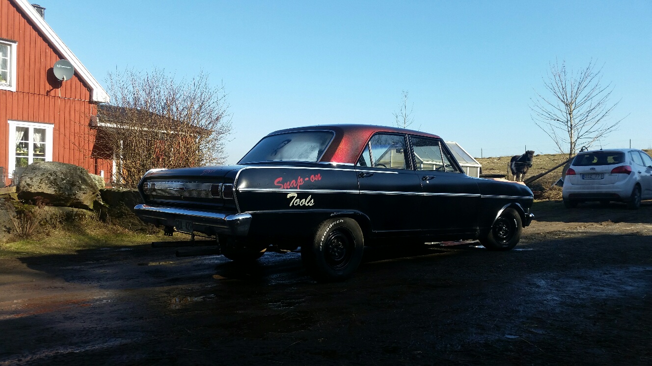 Det är då en Chevrolet Nova från 65 med en 327 Corvette motor i och msd tändbox. Motorn är gemongången och bytt ramlager osv för några år sedan.
