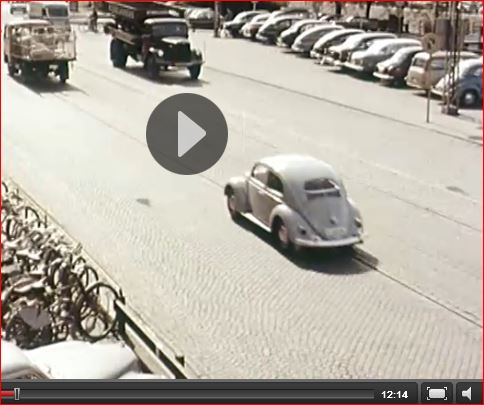 Visar Trafiken i Stockholm 1957, och många VW både T1 och T2 i dess naturliga miljö