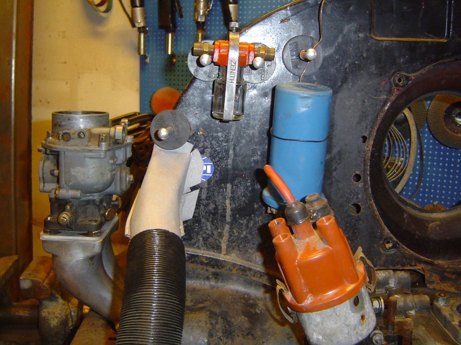 Nu är motorn hemma för inpassning av länkage förgasare insug bränslefilter MANNfilterhållare osv.......