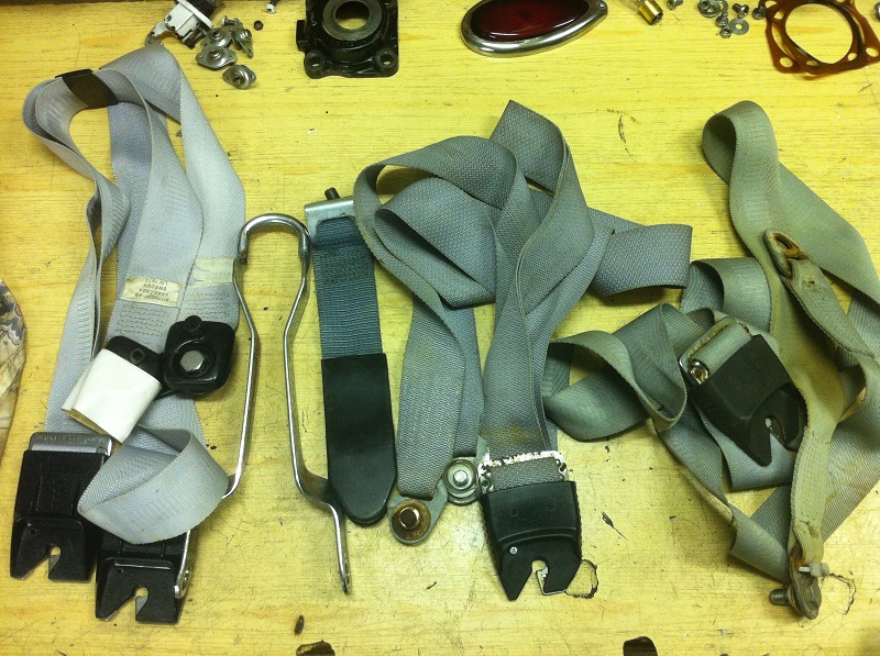 Fram är trepunktsbälten och bak är tvåpunktsbälten. Fram är troligen sjuttiotal och bak sextiotal, har dock haft samtliga monterade i min 66:a innan jag uppgraderade till rullbälten.