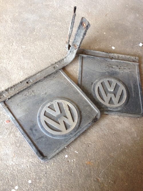 Boxerville » Delar säljes » Gamla stänkskydd med VW-märke i rostfritt