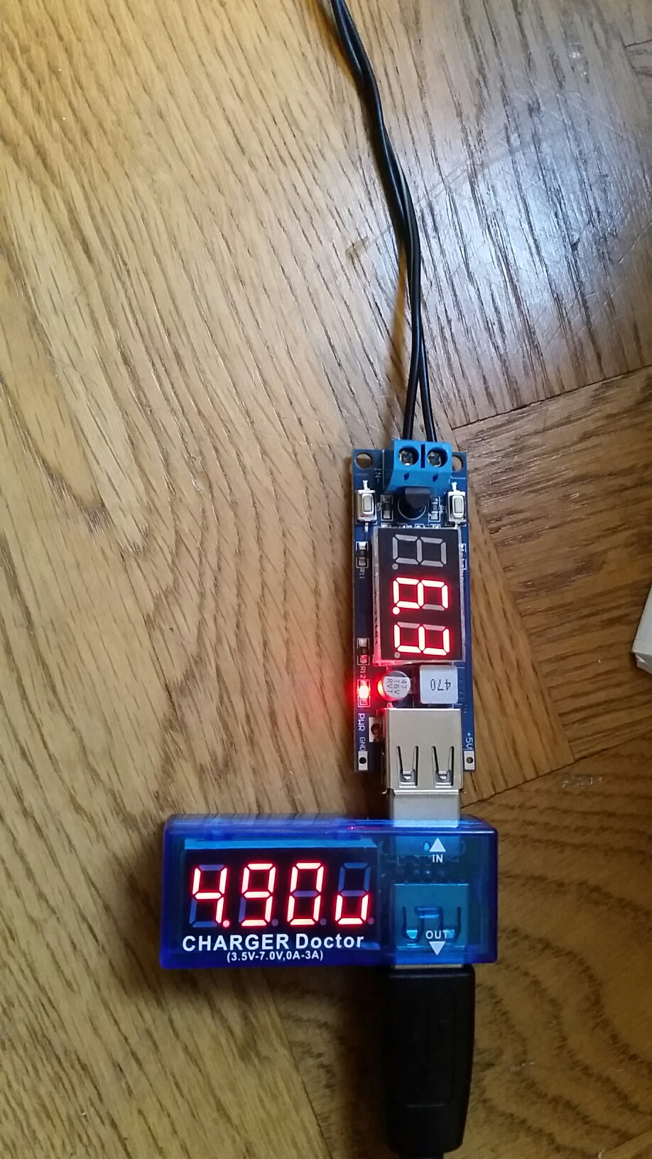 USB porten ska leverera 5V/2A men har själv inte lyckats få ut mer änn 1.3A. Voltmätaren visar inspänningen och inte utspänningen.