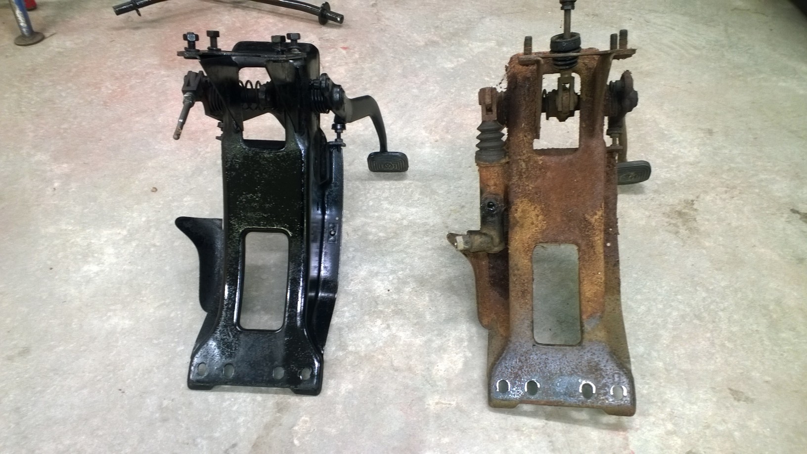 Renoverat vs rostigt pedalställ, behövde i princip bara rengöras och smörjas plus lite penselrenovering.  ICQ/ag