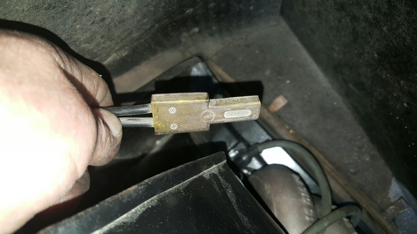 En sak som kan förvirra ordentligt i dessa sena bubblor är VW-diagnos. Om du tittar till vänster i motorrummet så finns det en stor multikontakt med ett lock på där. Från denna förgrenar det sig en massa tunnare kablar in i hela bilen. Det var mätkablar för ett tidigt felsökningsverktyg som