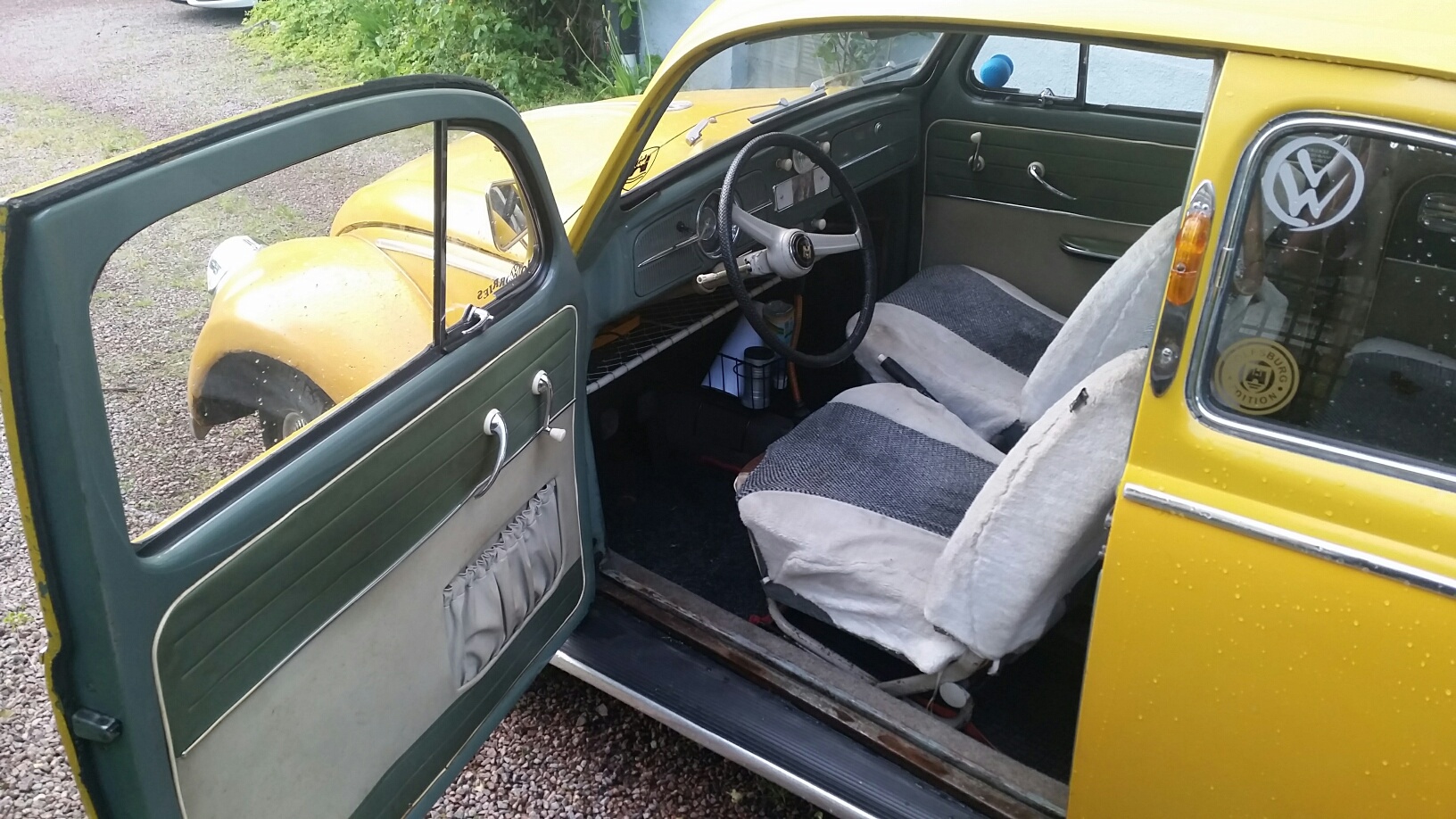 Förarstolen är bytt all annan inredning är original. Inte orkat ta av sätesskyddet på ryggstödet bak.