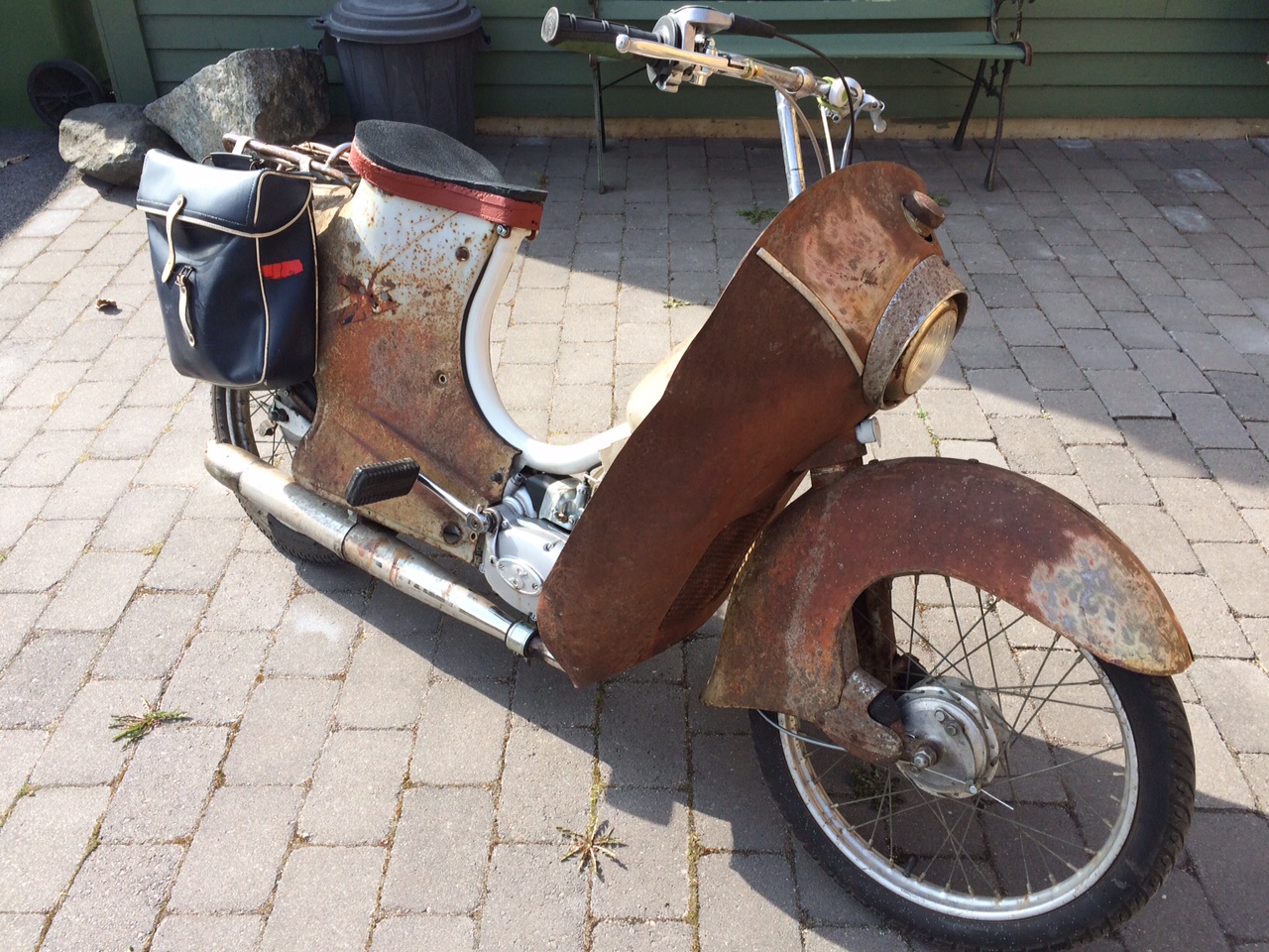 En Crescent 2000S, helt renoverad med blästrad ram lackad,sedan plockat tillbaka alla rostiga karossplåtar.Uppgraderade hjul med bättre bromsar. Motorn är en Sachs 60cc 3 växlad (hand), 17mm förgasare och Jamcoldämpare. Gör sisådär 70-75km/h... ingen VW direkt men kul som tusan är det.
