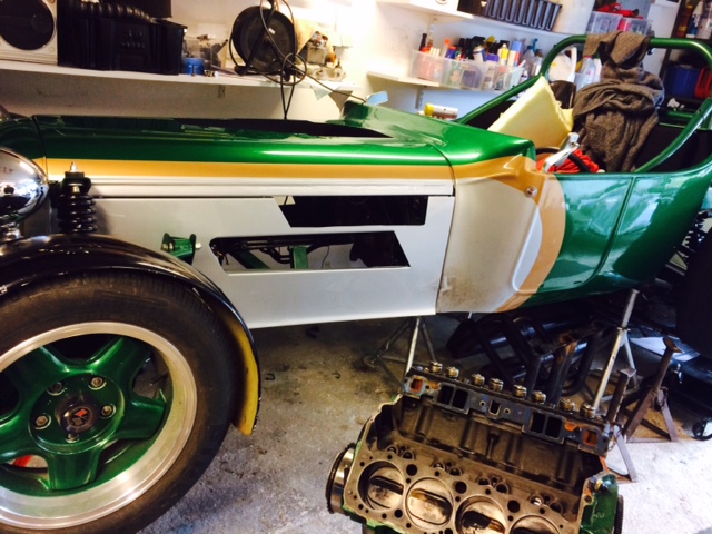 Det blir fint det där! SFRO Gustaf i Västerås pratade om en speedster i Eskilstuna när jag va över till honom i somras med mitt chassie. Jag har en coupe-kaross jag stökar med för att få ordning på. Hur blev den därninga brandväggen som han ville ha? klädde du plastväggen i plåt eller fick du byta ut den helt till plåt? Har du någon defroster eller säger dom ingenting om det i cabbar/speedstrar?