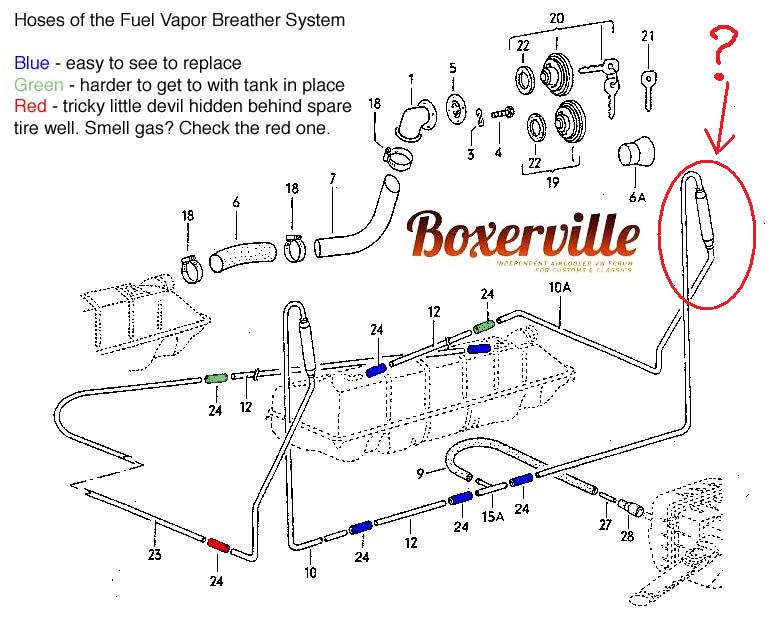 Har förstått att det är ventilering av tanken. Men vad fyller rören som går upp och vänder i luftintagen för funktion - och vad gör klumpen för nytta. och varför så mycket rör när den ändå bara slutar i luftburken??? Bubblan har ju bara en slang som går rakt ner under bilen!!