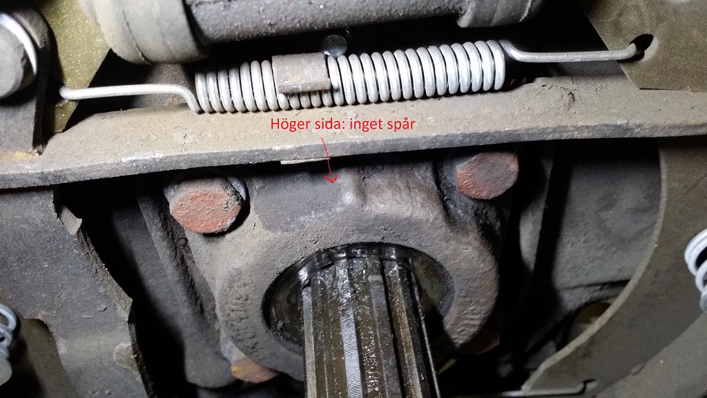 Jag har upptäckt att det läcker ut olja/vätska ur vänster bromstrumma på min bubbla från 1968, så jag öppnade upp det idag för att kolla vad som är fel. Då ser jag att det tryckt ut växellådsolja. Inget konstigt med det tänkte jag först, jag får beställa ett kit med packbox och packningar och renovera detta.