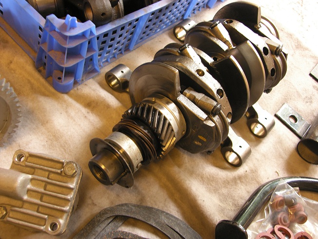 En hög motordelar: 69mm motviktsvev med nya stakar, engle W110-kam med drev (en av nockarna har en liten skada, men inget som borde påverka) - dessa delar är nya, endast prov/in-körda! Begagnat: fin oljepump (ej pluggad) + lock med utgång. Motorstöd, samt diverse packningar och grejer enligt bild tex. förstärkt kopplingsgaffel. Följer med innehåll från ett skrotat dubbelreducerat block också för den som vill..