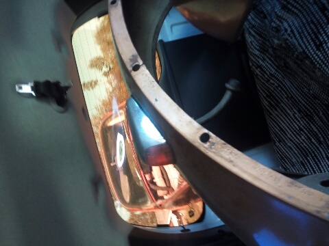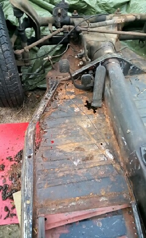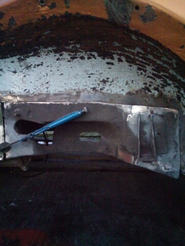 Började sedan plocka ner den o då visade det sig att trösklar , innerskärmar , Napoleon hatten, värmekanalerna o en hel del mer va väldigt rostiga och innerskärms kanterna va spacklade för o täcka att dom va intryckta...