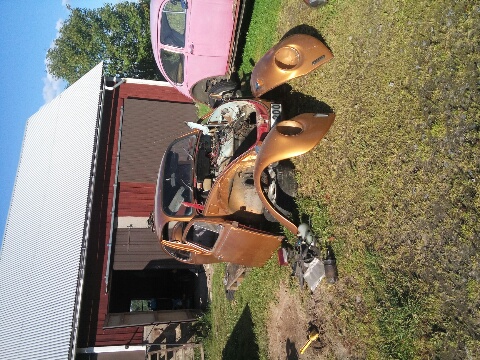 Så började kapa i den guldiga karossen den 10:e Augusti o första plåten o svetsa blev mellanplåten bak, den plockades från den rosa för den guldigas va rejält intryckt.