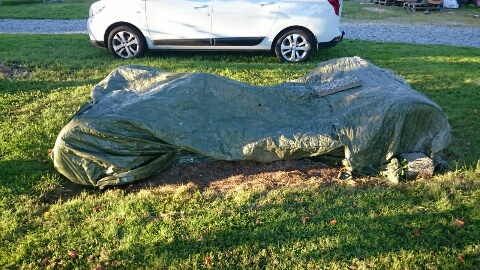 Den va smälld och saknade motor. Tyvärr hade det blivit ett lager med alger o mossa på den.