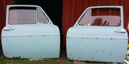Rensar ut bland mina typ3 grejer. Dörrarna är sönderrostade längst ner.Luckan är också genomrostad på ett par ställen. Hyggligt bruksskick på stötfångarna bak, stötfångarna fram är båda lite krockskadade.