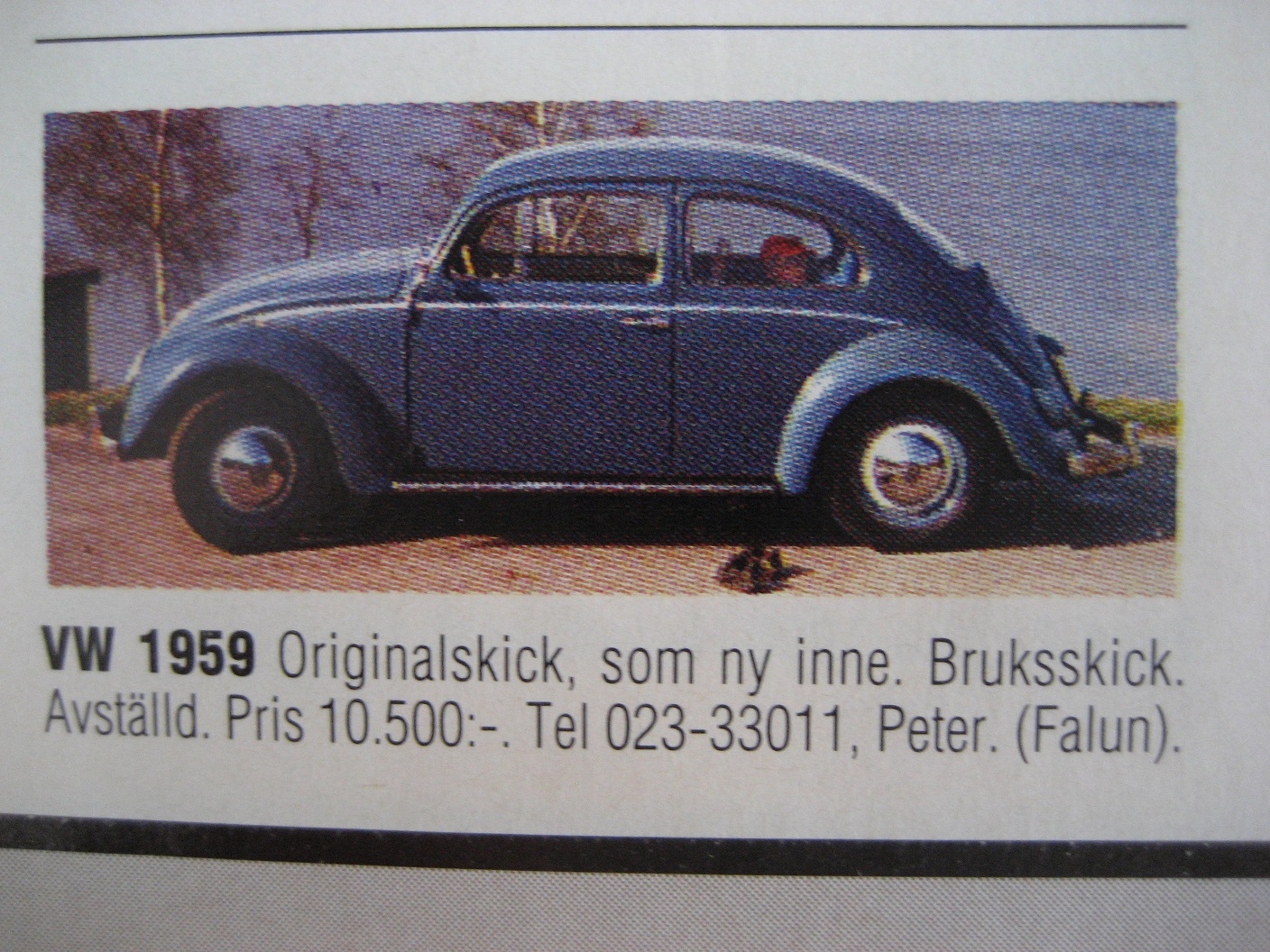 1960 VW type 1, indigoblue, all original, 30000 miles since new, MOT'd, slight rust on the fenders, one heater channel welded in 1987, £1000