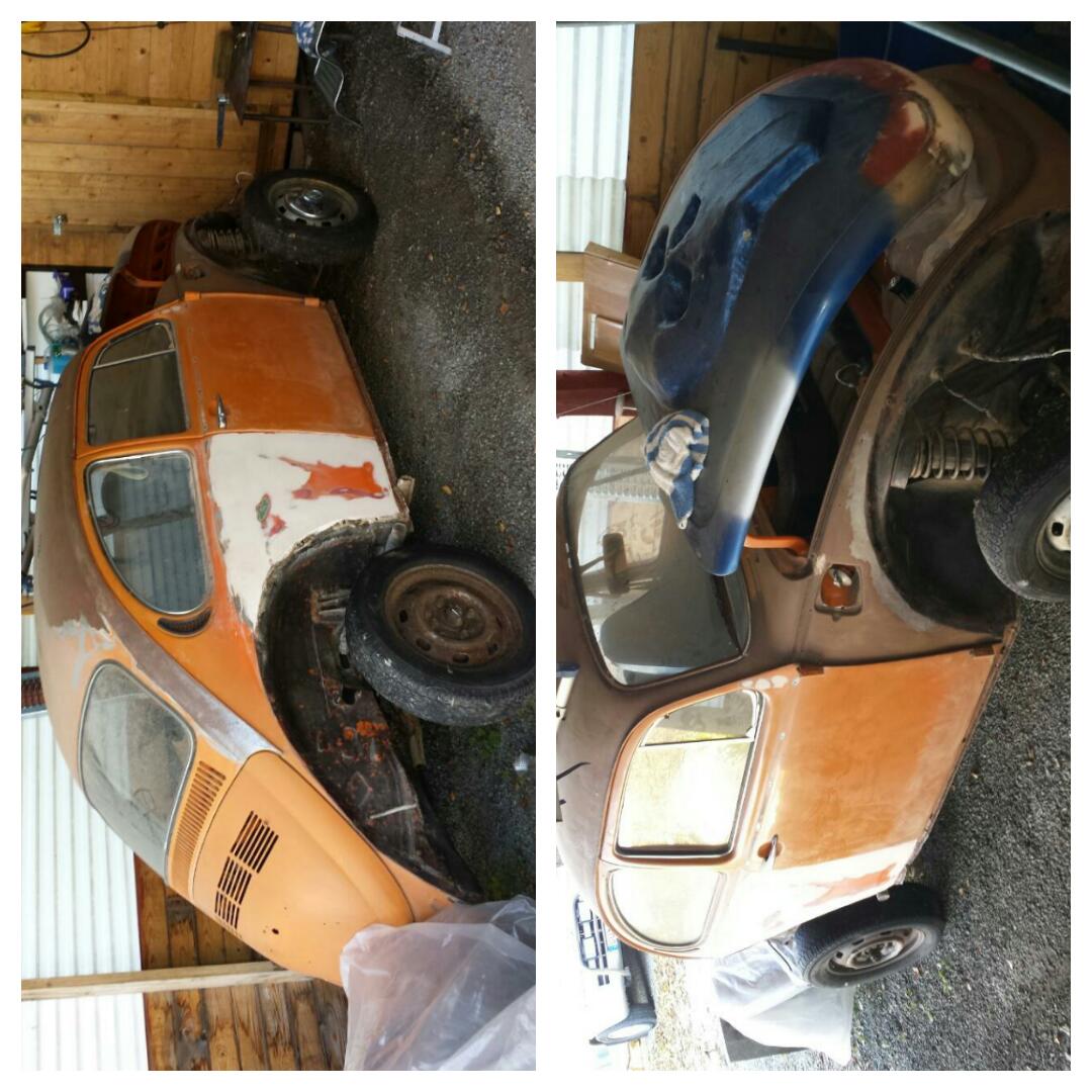 Jag skulle i min fantasi göra iordning denna till vad jag tyckte skulle bli den absolut coolaste bubblan. Jag menar kolla bara på den halvfärdiga dödskallen på motorhuven. Jag höll på ett tag sen vart jag less. Har väntat på att orken ska komma tillbaka men den försvann nog väldigt långt bort för jag har inte sett skymten av den sedan den drog. Jag har inget garage att hålla på i heller så det blir ju frostskador både här och där nu när det blir lite kallare ute. Vill dessutom inte att den ska stå ute och skämmas för hur den ser ut. Passar vidare detta objekt med lite sorg i hjärtat. Jag ville ju verkligen ha den där coola bubblan som jag hade sett framför mig i mitt huvud. Men nej så blev det inte. Kom och köp denna stackare och ta hand om den med lite kärlek.