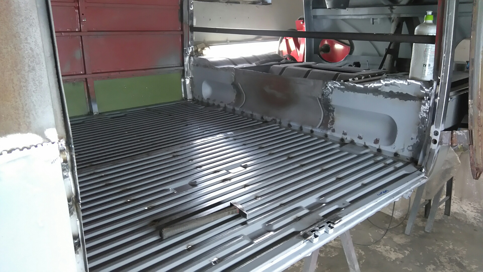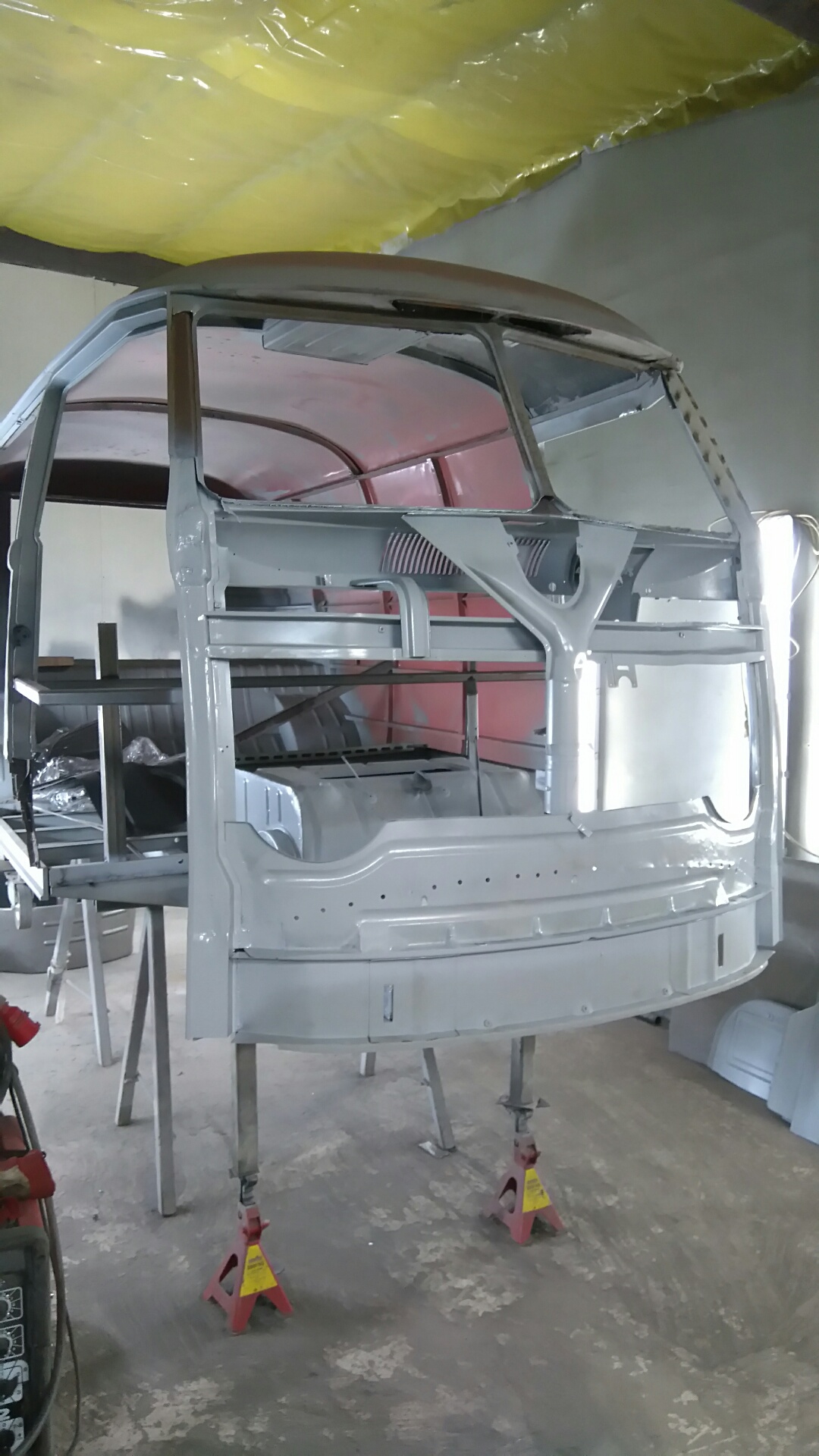 Det är blandat plåtar jag har fixat och som de har fixat. Jag har ju samlat på mig under 2-3 års tid. De har köpt in hjulhusplåtarna i förarhytten samt till A-stolpar och runt framrutona bla + lite till.