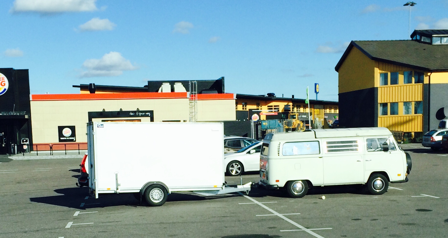 Såg en utlandsreggad early bay westy med stort släp, utanför burgerking i Löddeköpinge igår.