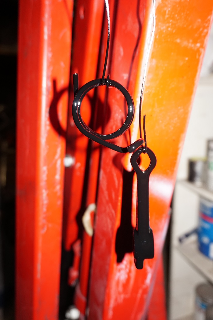 Så igår blåste jag framvagnen med ett par lager klarlack, mellansli... nej skoja bara men klibban fick ett litet lager över sig också, dels för att skyddas dels för att få iaf samma blankhet som resten.