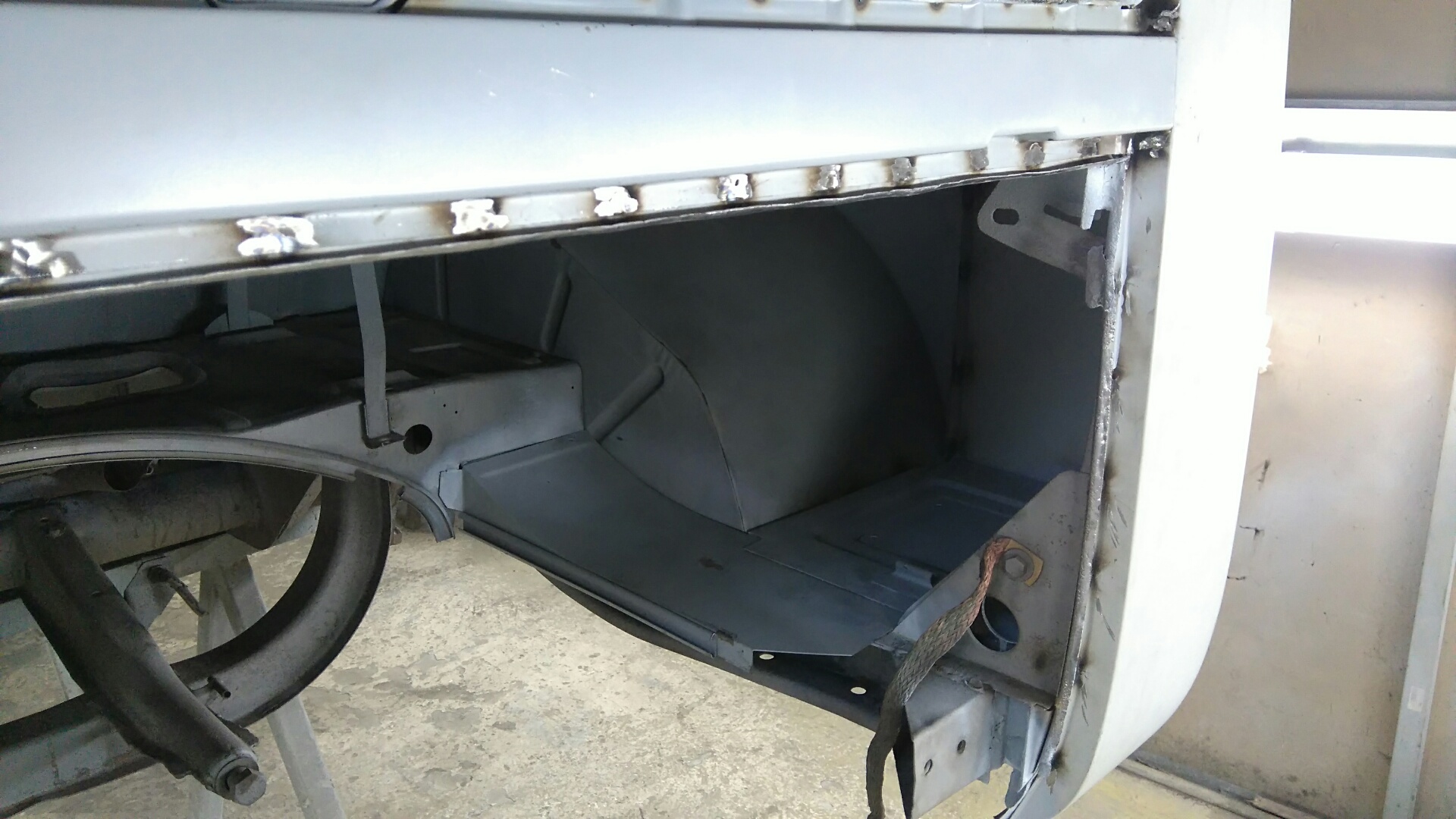 Hmm tycker det ser ut som dom har falsat karossplåten  och lagt dom nya bitarna med överlapp =rostficka .. sedan bara punktat... blir det mer svets. eller bara spackel som täcker??