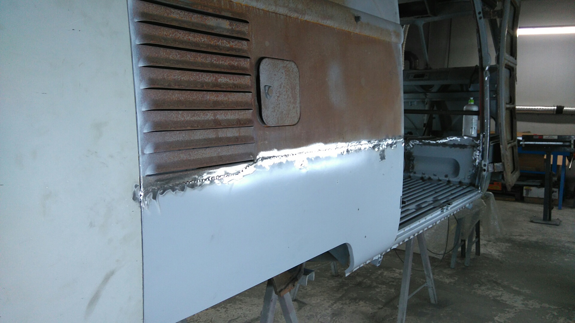 Det är blandat plåtar jag har fixat och som de har fixat. Jag har ju samlat på mig under 2-3 års tid. De har köpt in hjulhusplåtarna i förarhytten samt till A-stolpar och runt framrutona bla + lite till.