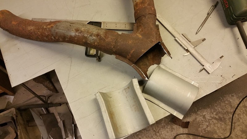 Som ni också ser så har jag sparat de gamla resterna av originalramen för att ha något att se och mäta på var rören en gång i tiden suttit, och det var tur det. För vissa mått och dragningar som inte var självklara gavs svar av fragmenten.