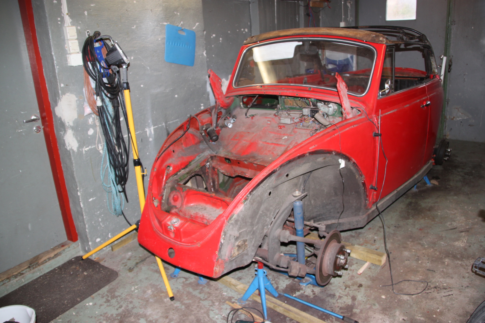 Jag köpte en VW typ 1 cab -70 för 20 år sedan för att kunna åka taklöst, hittade en i skåne som var i ett åkbart skick tyckte jag, nyrenoverad tyckte säljaren. Ihop svetsad platta och kaross, dåligt målad, men den dög att åka med så det blev affär ändå. Fick dela plattan och karossen den vintern för att byta värme kanaler, golv och laga rost här och där. Tänkte att svetsa lär man sig, men det var svårare än jag trodde. Sedan har den varit lite av en rullande renovering fram till i höstas när hustrun, som använder den hela sommaren, tyckte att sätena och cabben såg för jä....a ut. Så det var bara att börja kolla vad som skulle göras och det ena har lett till det andra. Med andra ord en helrenovering. Jag var väl inte så ledsen för att hon puttade i rätt riktning.