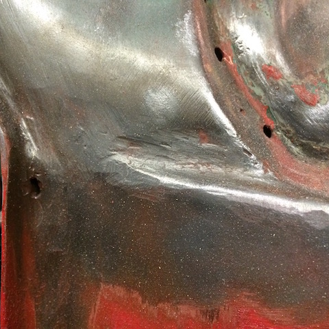 Så ser den högra flanken mer rätt ut än den vänstra. Det är fyllt med mässing i skarven från fabrik och det verkar vara modifierat på den vänstra sidan.