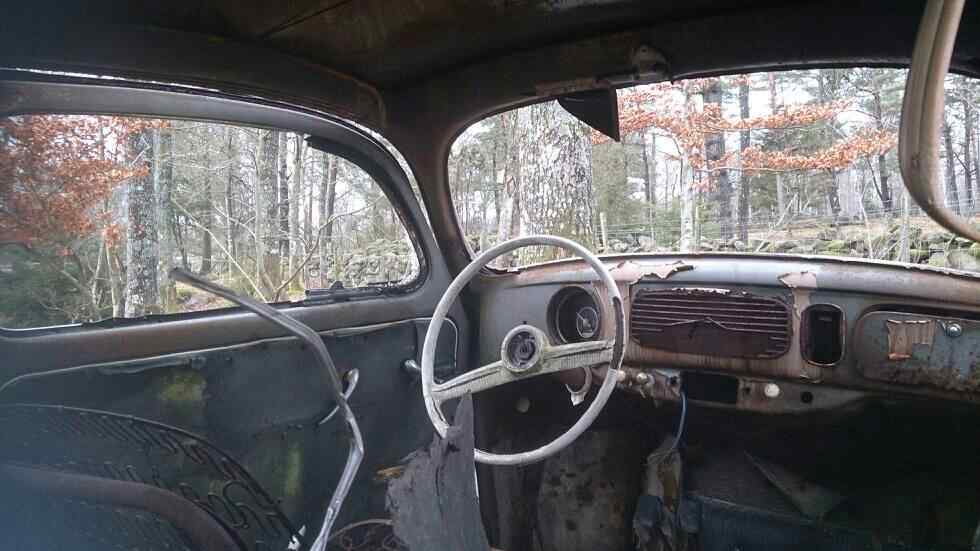 Denna 56:a skänkes till behövande. Något finns säkert att rädda. Pilar sitter kvar. Hela bilen måste hämtas. Ring mig så ger jag ut ägarens nummer. Står strax utanför Kinna. o121-4211o