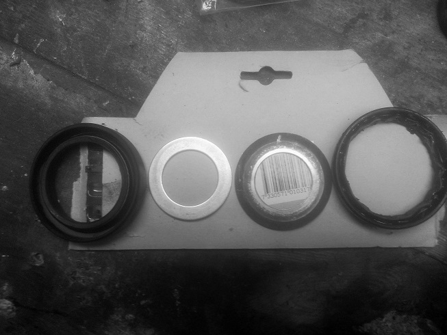 Så bytte drivaxeldamasken som hade gjort sitt, dock får man se hur länge denna delade tyskdamask håller. Läckte ju även in olja i bromstrumman så det blev till att montera en ny packbox/packning/o-ring. (nån som vet vad den lilla brickan ska vara i denna sats för den passade inte på notchen i alla fall, då den hade större diameter.