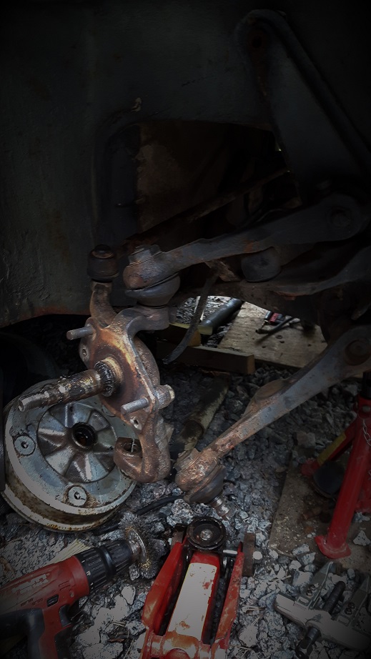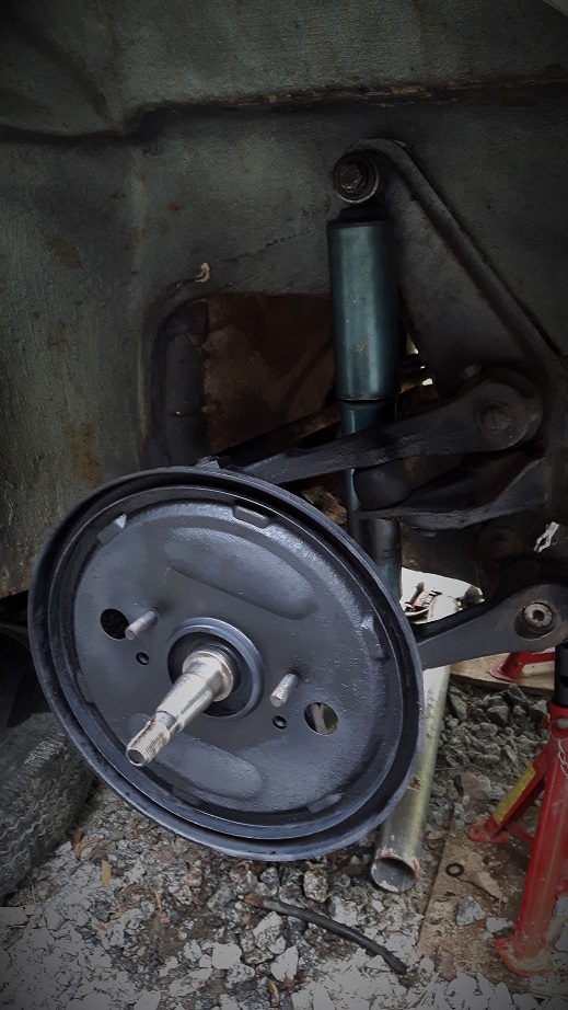 Nu är båda bakre bromsar renoverade och sänkt bak. Så nu e de dags att ge sig på framvagnen.