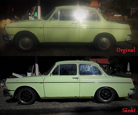 Idag pågår sänkning i fram, första gången jag pillat på en typ3 framvagn men de går bra  ICQ/ab  Blir 2 yttre hack fram. Så kan jag laborera med däckstorlek sen.