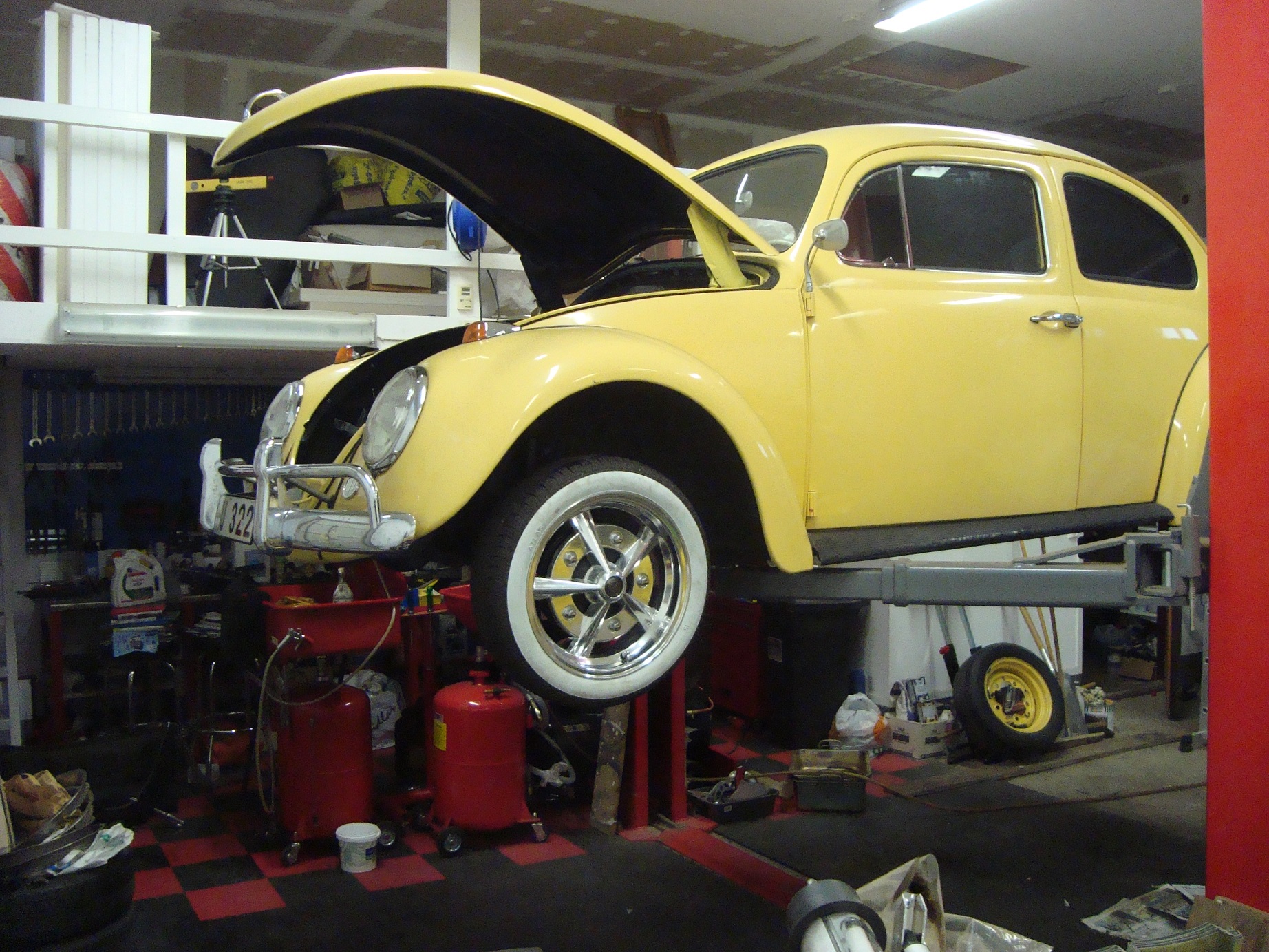 Lite bilder på vårens intensiv " renovering" av vw -62( tillverkad Augusti -61). Nedplockat och blästrat och lack + tectyl ICQ/ab. ( Ej topplack, bara platta och "underrede".)Topplacken är från -96. Klarat sig hyfsat. Varit avställd i många år. Motor och låda isär och kollade, nya packningar o-ringar etc, annars i god kondition.