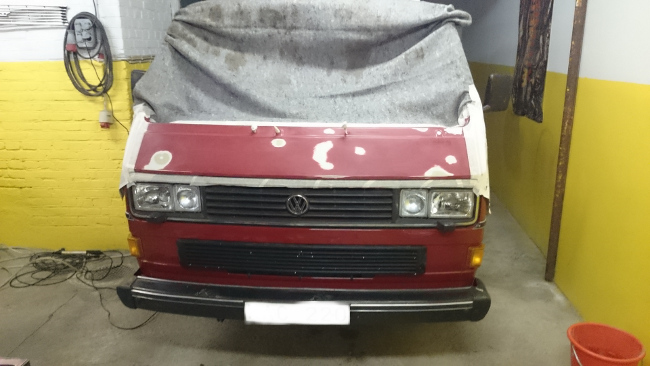 En mindre rostskada under vindrutan behövde åtgärdas. Detta resulterade i att vindrutan och instrumentpanelen behövde demonteras. Dålig plåt kapas bort, ny plåt svetsas i och sen lite spackel, slipning och lack.