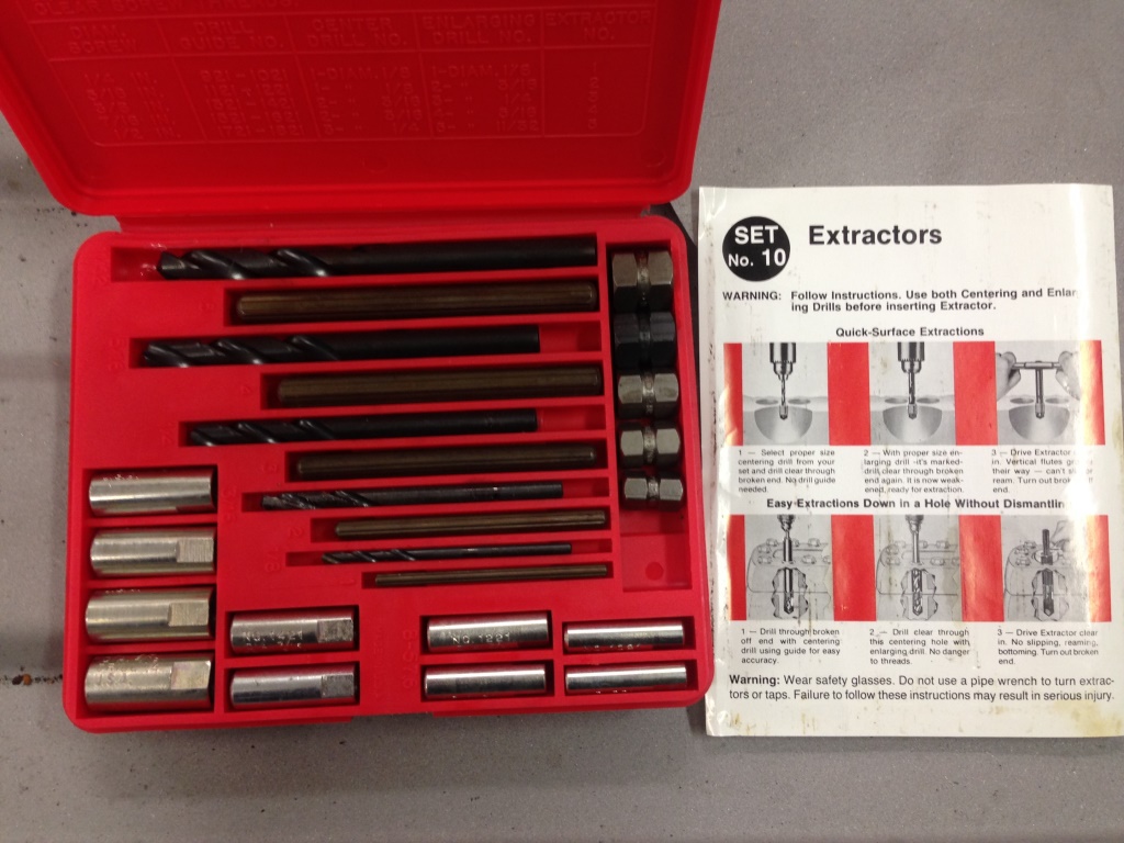Har en riktigt bra skruvutdragarsats som räddat mig många gånger. Just denna skruv hade dock bestämt sig för att den ville sitta kvar så efter att ha dragit av två av mina fina utdragare fick det bli en helicoil istället.