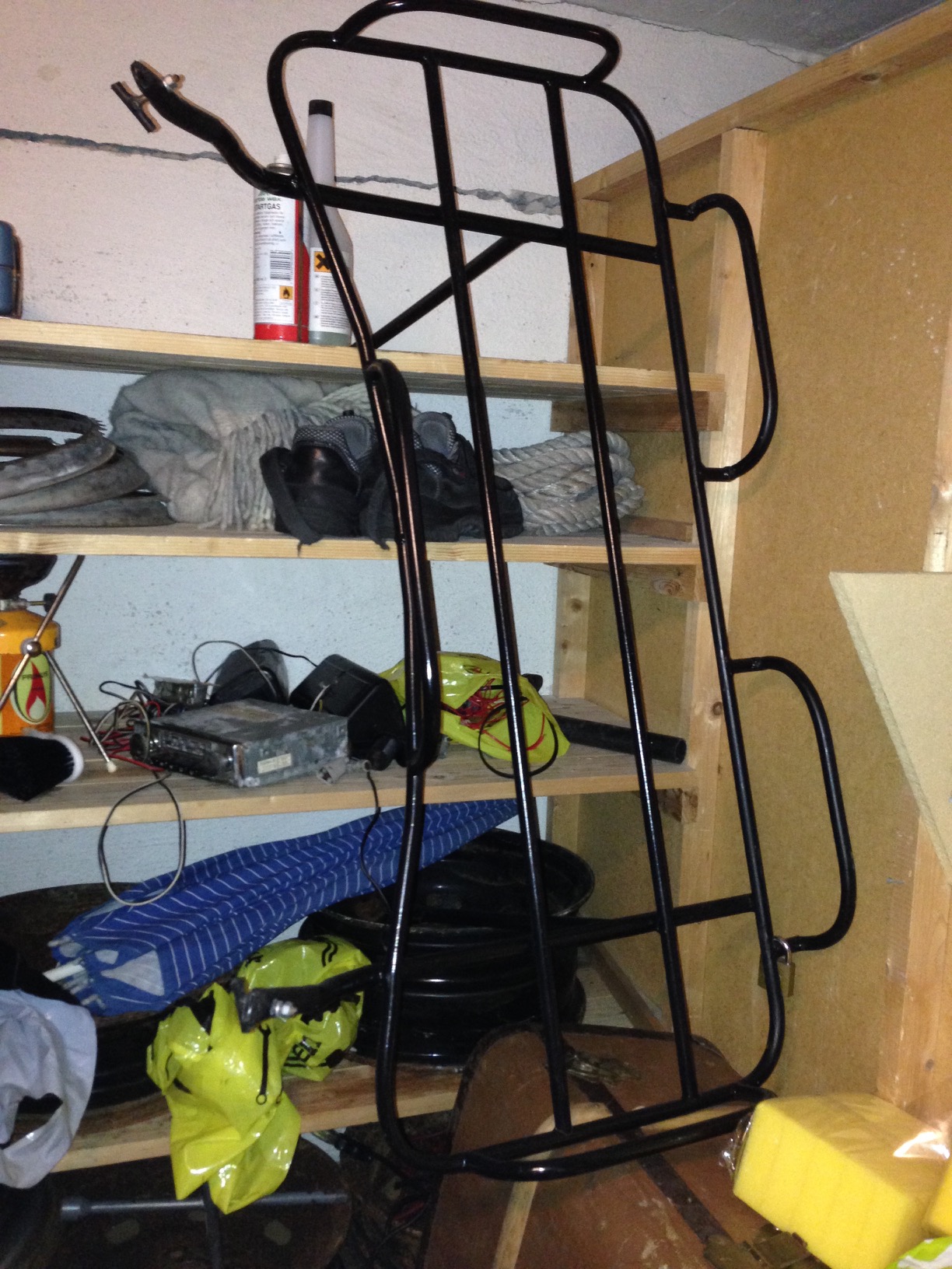 Bagageräcke som passade på min -69, finns hål vid ena benet för att låsa fast det hela med t.ex. ett hänglås.